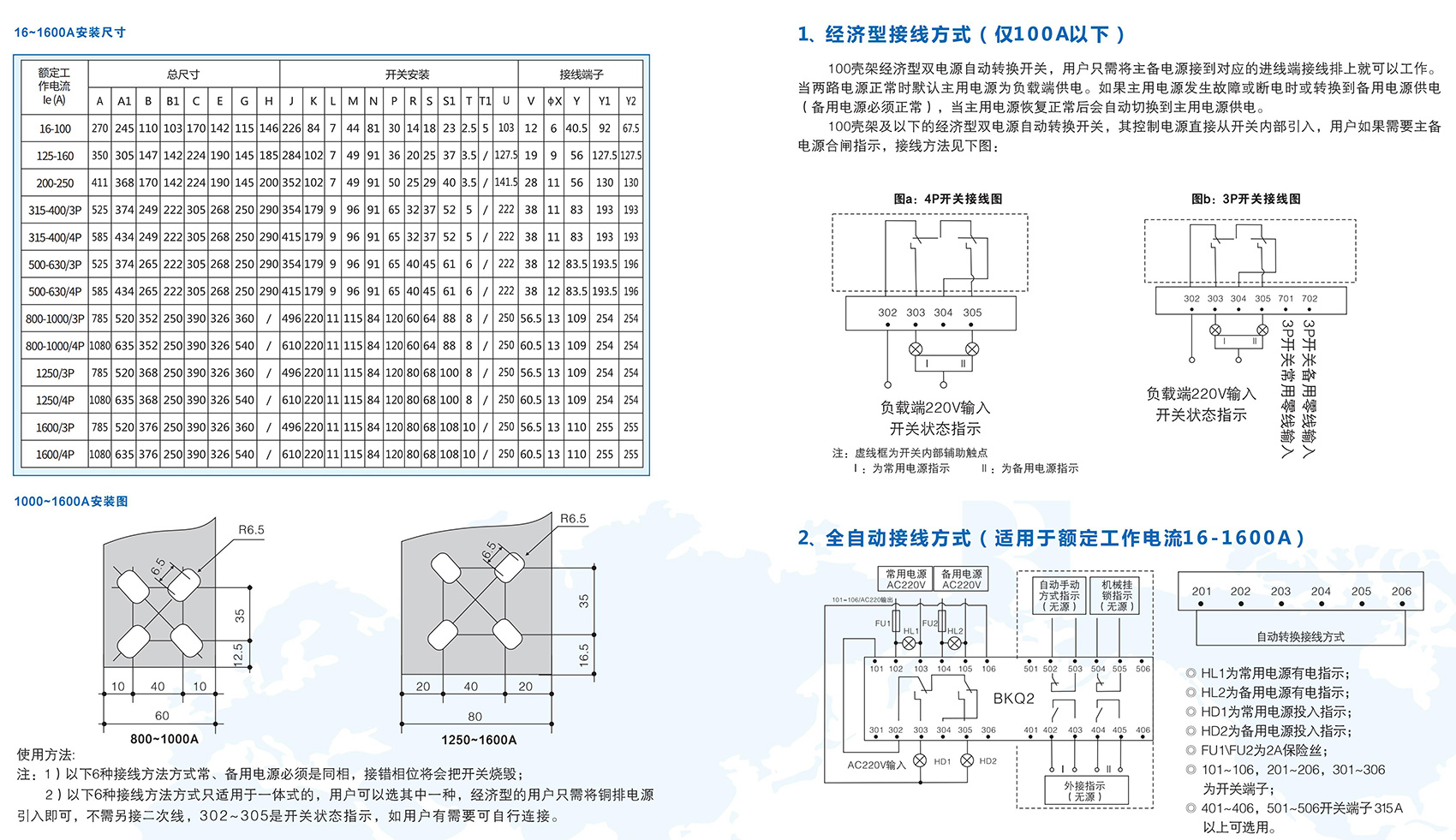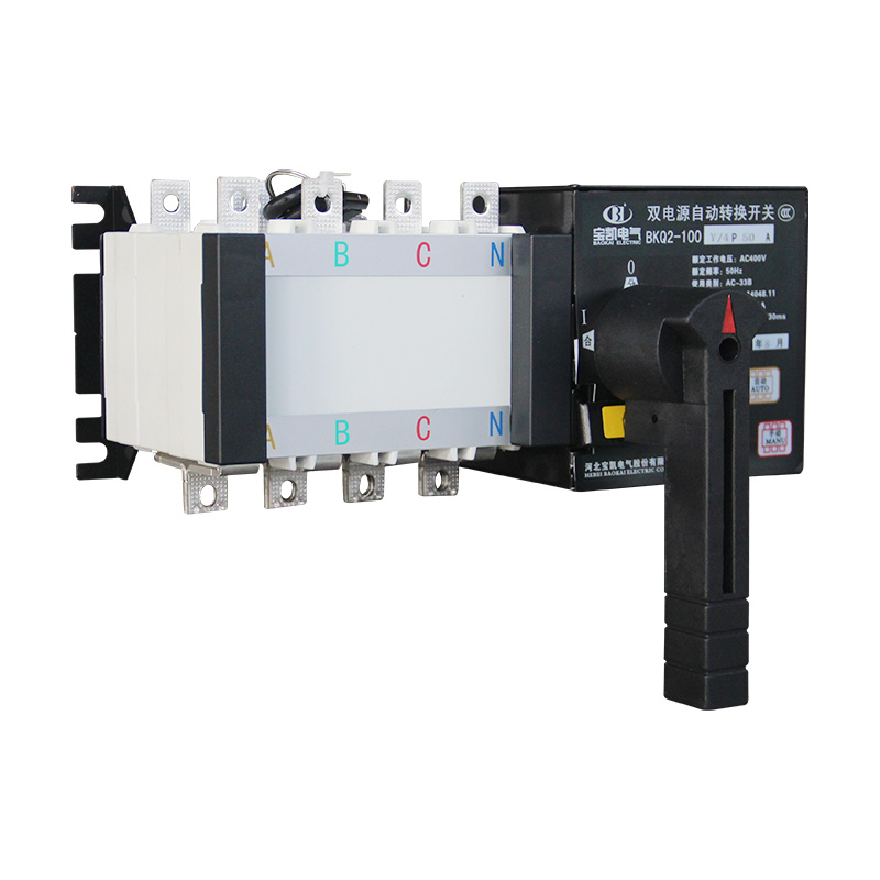 BKQ2系列双电源自动转换开关电器主要用于交流50Hz,额定工作电压400V及以下,额定工作电流16A至1600A的配电或电动机网络中一主一备或互为备用电源转换系统及市电和发电机组的负荷转换。同时可用于不频繁接通与分断电路及线路的隔离之用。产品广泛应用于消防、医院、银行、高层建筑等不允许断电的重要供电场所的输、配电系统及自动化系统。本产品符合GB/T 14048.11《低压开关设备和控制设备 第 6-1 部分:多功能电器 转换开关电器》。