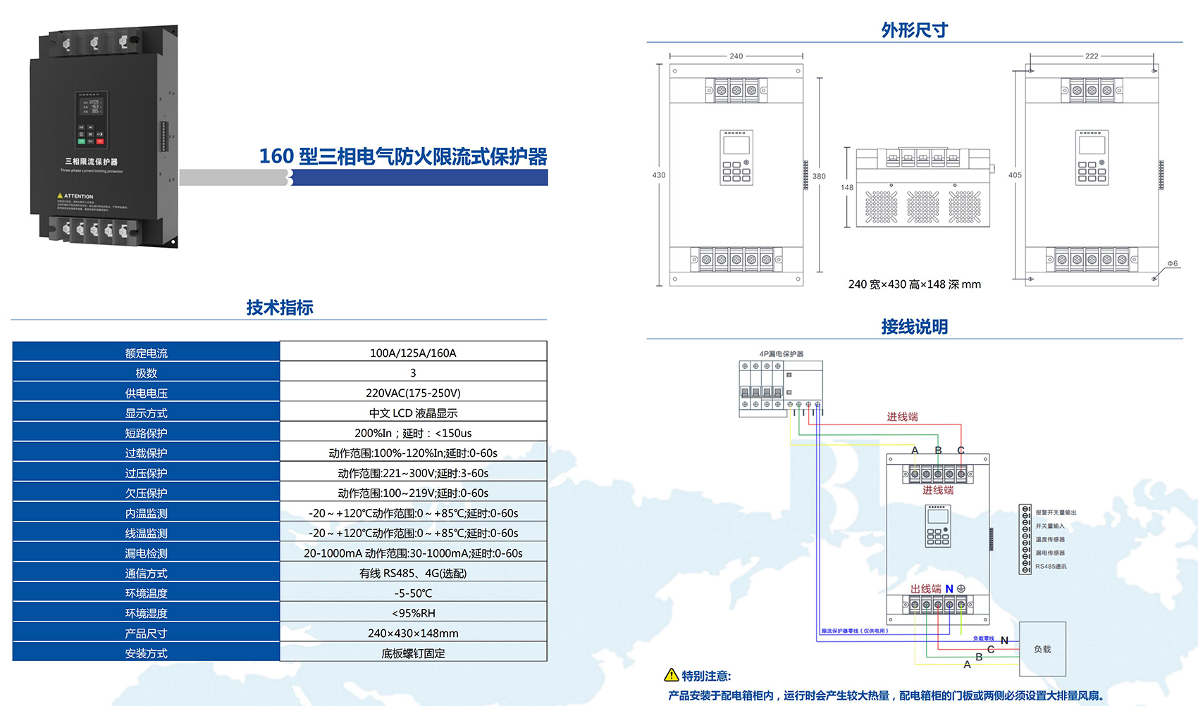 BKFCP系列电气防火限流式保护器,是一款能实时准确检测出用电回路的电流,并能以微秒级速度快速限制短路电流以实现灭弧保护,并集电压、电流、频率、温度(选配)、漏电(选配)等多种功能于一体,且具有智能化分析能力的新型用电安全监控装置。当被保护线路中发生短路故障时,电气防火限流式保护器能以微秒级速度快速限制短路电流以实现灭弧保护,在由短路产生的电流远未达到短路电流前就完成限流,从而预防电气线路短路过程中引起的连续拉弧打火等引燃可燃物造成的火灾事故,保障使用场所人员和财产的安全。