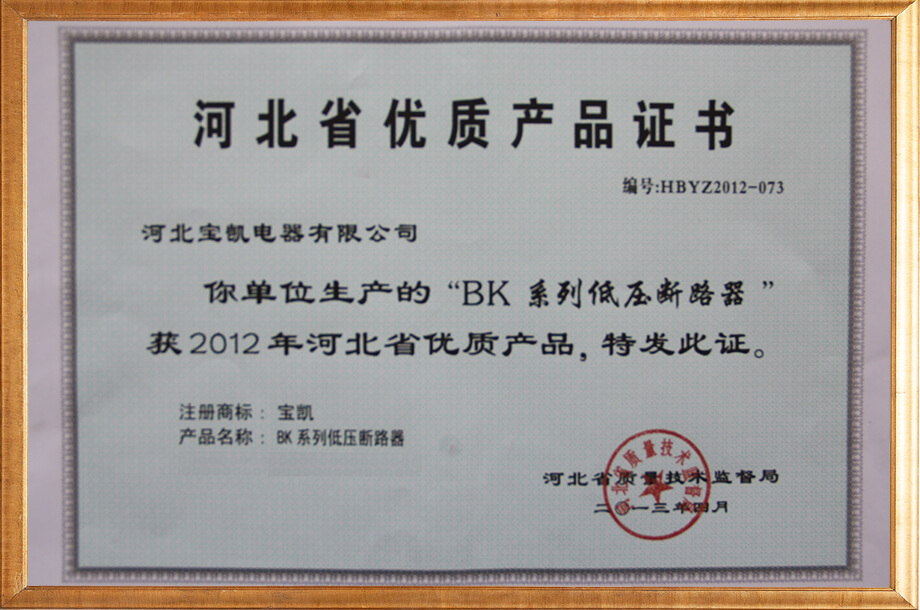 河北优质产品证书