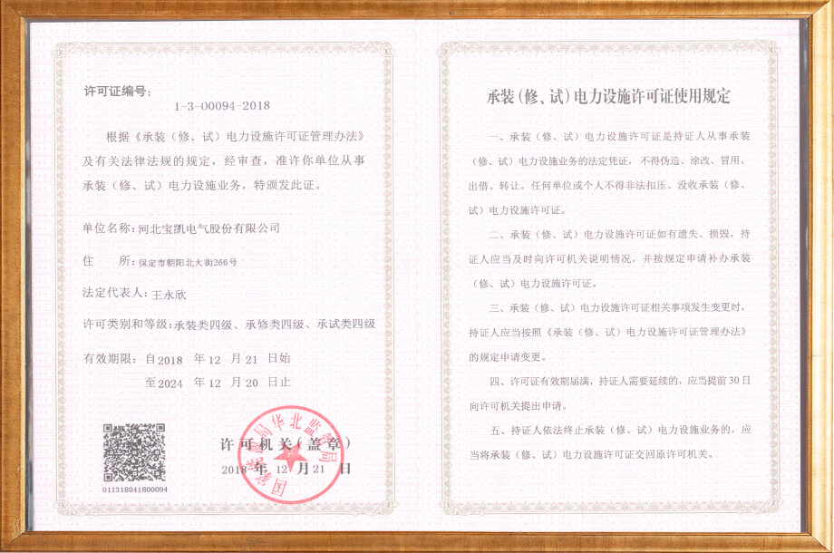 承装(修、试)电力设施许可证