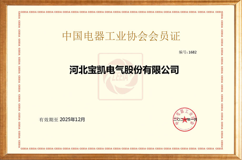 中国电器工业协会会员证2021年颁发