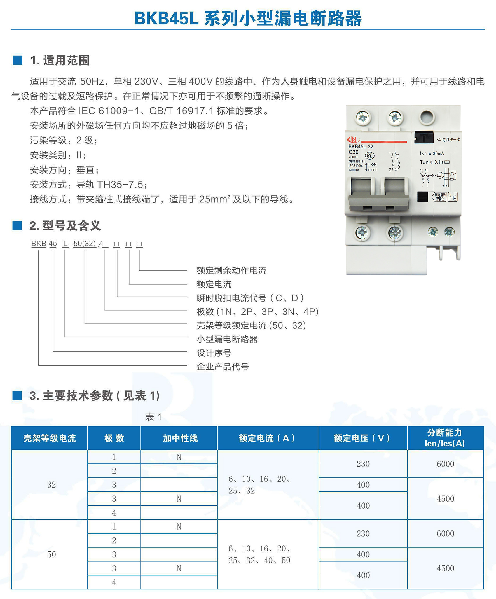 BKB45L-32系列带剩余电流?;ば⌒投下菲?/div>